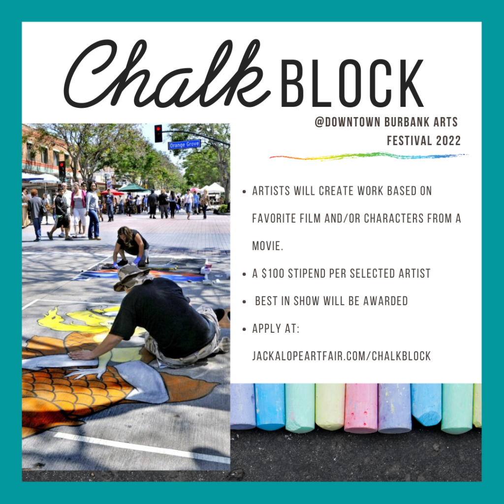 Chalk Block is seeking chalk artists to creat movie-themed work for its festival on May 14th & May 15, 2022 in Burbank. Selected artists will receive a $100 stipend.