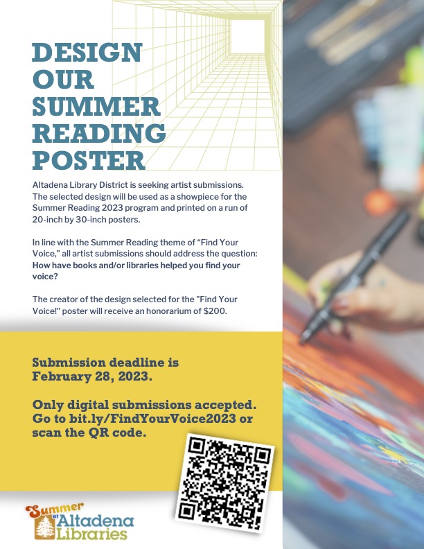 The Altadena Library District is looking for designs to promote its 2023 Summer Reading program.
